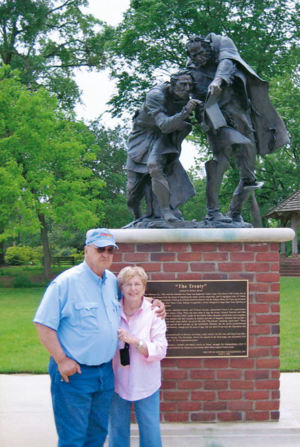The statue depicts Houston and Bowles signing the treaty of 1836 with the Native American tribes of east Texas, ensuring their neutrality in the war with Mexico. A treaty that was soon broken when the white settlers wanted the Indian territory for farming.