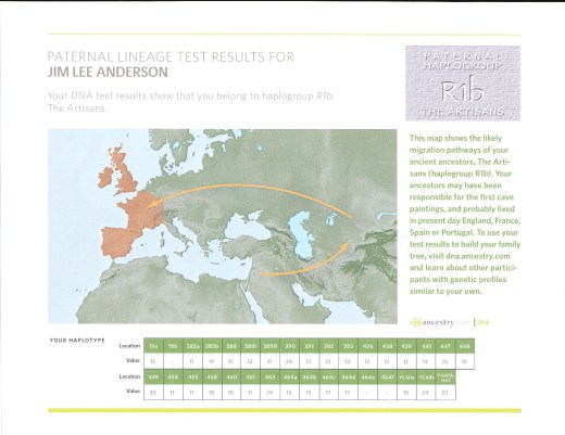 After sending in my first DNA for analysis I waited anxiously to learn more about the Anderson’s living in the 1800,s and our Native American lineage. Wrong. I have to admit I was lost when they explained “DNA is comprised of four bases: Adenine (A), Cytosine (C), Guanine ((G), and Thymine (T) , I took college chemistry but that did not help. However the charts given were helpful in following the migration pathways of our ancient Anderson ancestors.