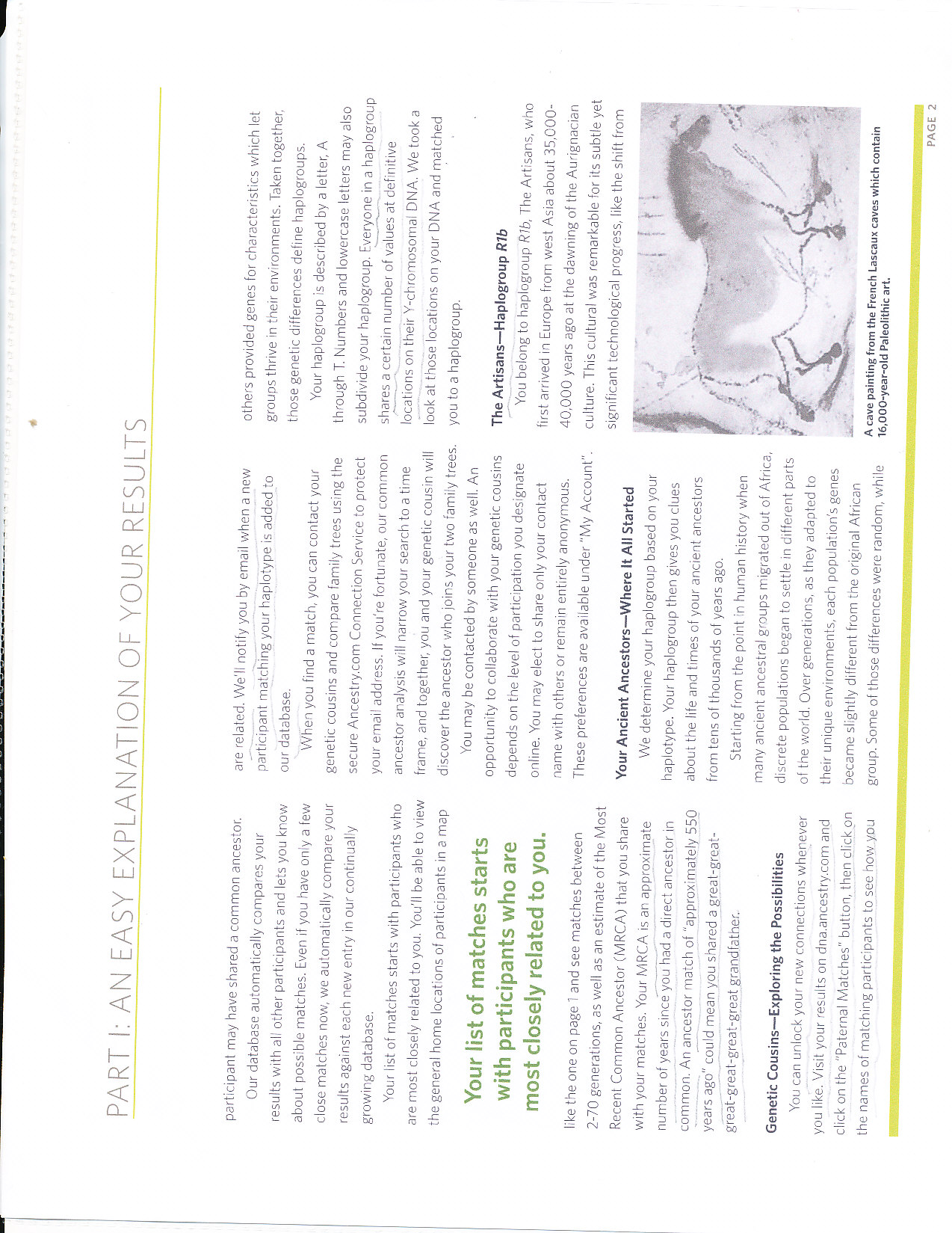After three DNA genetic analysis, I have learned very little about our modern lineage (last 300 years) and a lot about our ancient ancestors. Scientists have determined that all mankind originated in Africa. All of us shared a common ancestor who lived in Africa approximately 65,000 years ago